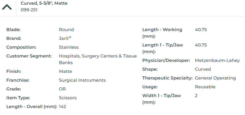 METZENBAUM (LAHEY) SCISSORS 5-5/8, CURVED, MATTE