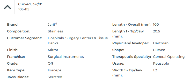 HARTMAN MOSQUITO FORCEPS 4, CURVED, MATTE FINISH