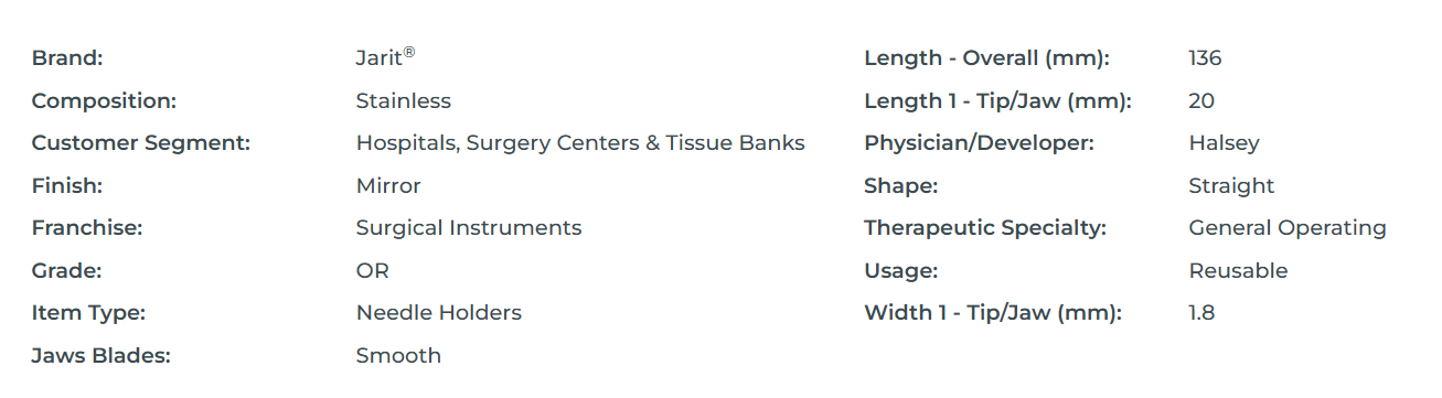 HALSEY NEEDLE HOLDER 5-3/8 SMOOTH JAWS