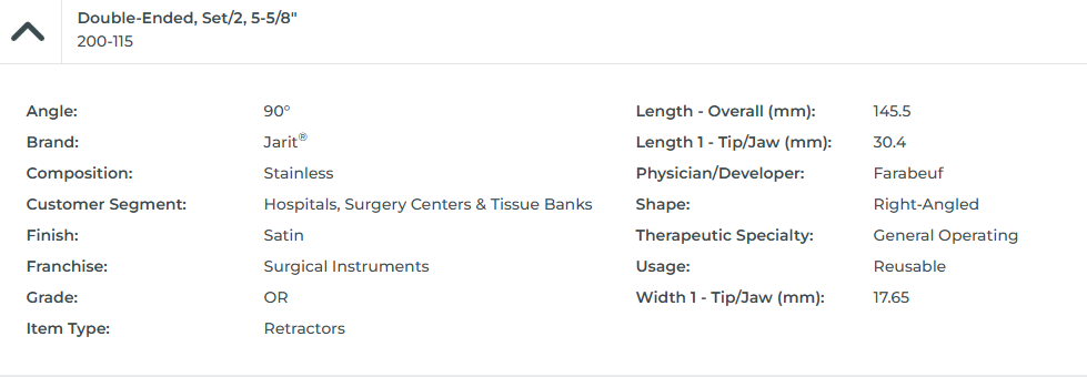 FARABEUF RETRACTOR 5-7/8, DOUBLE-ENDED, SET OF 2