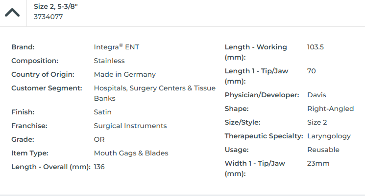 DAVIS MOUTH GAG BLADE, 5-3/8, SIZE 2