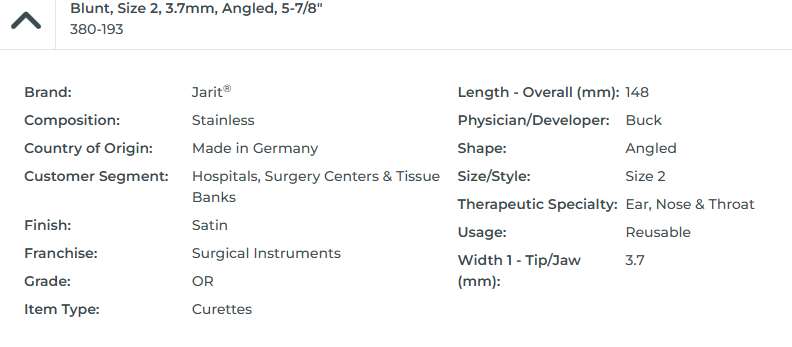 BUCK EAR CURETTE, 5-7/8, ANGLED, BLUNT, SIZE 2