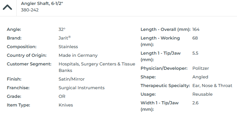 POLITZER EAR KNIFE, 6-1/2, ANGULAR SHAFT