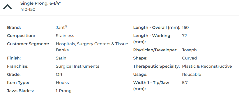 JOSEPH HOOK 6-1/4, 1 PRONG